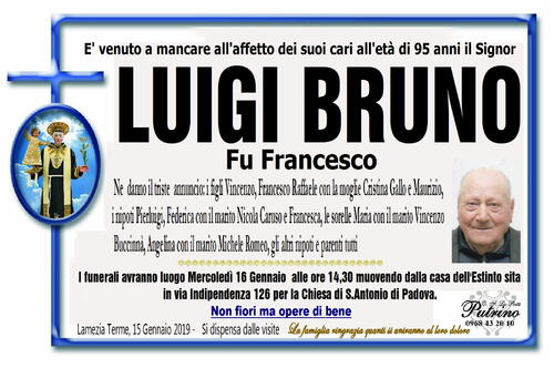 I funerali avranno luogo Mercoledì 16 Gennaio alle ore 14,30 muovendo dalla casa dell'Estinto sita