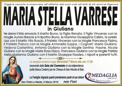 Ne danno il triste annuncio: il marito Bruno, la figlia Renata, il figlio Vincenzo con la moglie Aurora Brescia e il nipotino Bruno, la mamma Giuseppina Calisto, la sorella Lisa con il marito Vito Ruscio, il fratello Vincenzo con la moglie Francesca Pizzino,il fratello Franco con la moglie Antonella Suppa, i cognati: Maria Giuliano vedova Costantino, Antonio Giuliano con la moglie Santina Fraone, Nicola Giuliano con la moglie Maria Rosa Diaco, Francesco Giuliano con la moglie Patrizia Aiello, Marianna Giuliano con il marito Giuseppe Nosdeo, i nipoti e parenti tutti.