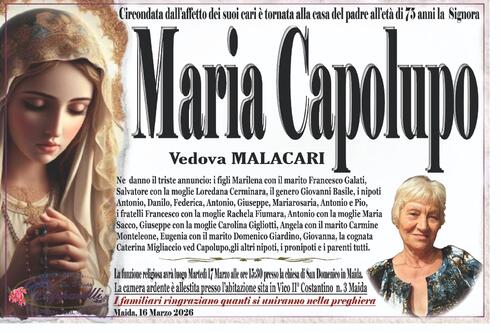 Caterina Migliaccio ved Capolupo,gli altri nipoti, i pronipoti e i parenti tutti.