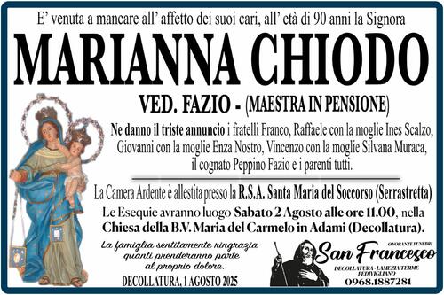Ne danno il triste annuncio i fratelli Franco, Raffaele con la moglie Ines Scalzo, Giovanni con la moglie Enza Nostro, Vincenzo con la moglie Silvana Muraca, il cognato Peppino Fazio e i parenti tutti.
