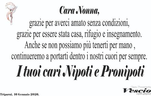 La camera ardente è allestita presso la propria abitazione sita in c.da Trisaino - Tripani