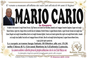Le esequie avranno luogo Sabato 18 Ottobre alle ore 15:30