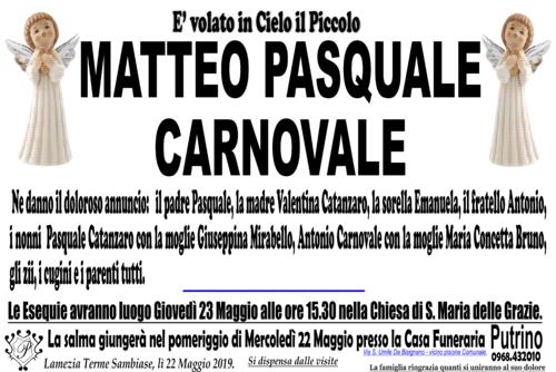 Ne danno il doloroso annuncio: il padre Pasquale, la madre Valentina Catanzaro, la sorella Emanuela, il fratello Antonio,