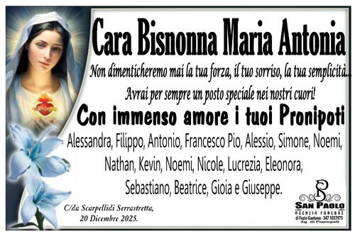 C.da Scarpelli di Serrastretta, 20 Dicembre 2025 - La famiglia ringrazia quanti si uniranno al suo dolore