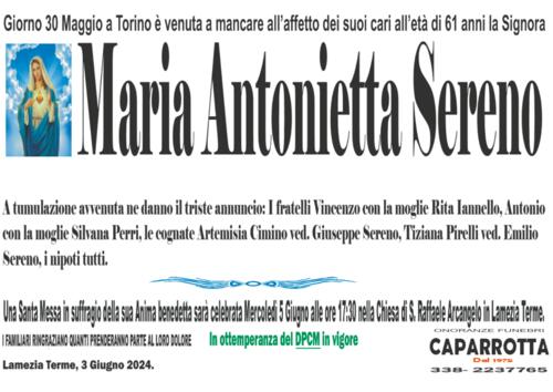 A tumulazione avvenuta ne danno il triste annuncio:I fratelli Vincenzo con la moglie Rita Iannello, Antonio con la moglie Silvana Perri, le cognate Artemisia Cimino ved. Giuseppe Sereno, Tiziana Pirelli ved. Emilio Sereno, i nipoti tutti.
