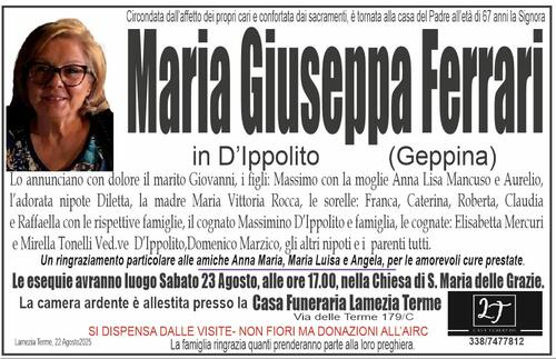Lo annunciano con dolore il marito Giovanni, i figli: Massimo con la moglie Anna Lisa Mancuso e Aurelio,