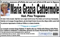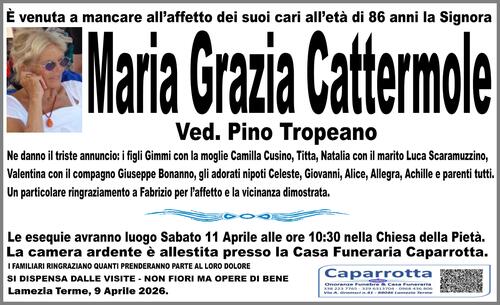 Ne danno il triste annuncio: i figli Gimmi con la moglie Camilla Cusino, Titta, Natalia con il marito Luca Scaramuzzino, Valentina con il compagno Giuseppe Bonanno, gli adorati nipoti Celeste, Giovanni, Alice, Allegra, Achille e parenti tutti.