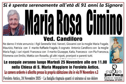 Feroleto Antico, 24 Novembre 2025 - La famiglia ringrazia quanti si uniranno al suo dolore