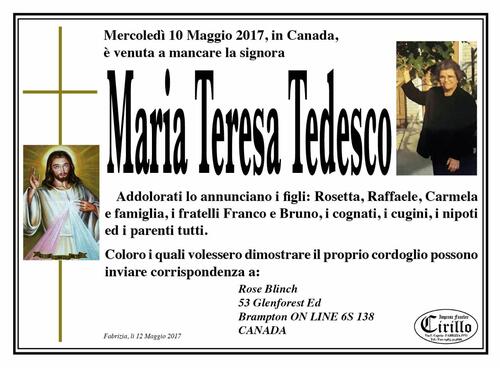 Addolorati lo annunciano i figli : Rosetta , Raffaele , Carmela e famiglia , i fratelli Franco e Bruno , i cognati , i cugini , i nipoti ed i parenti tutti.