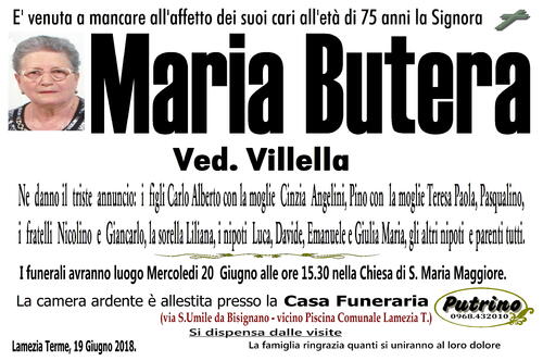 I funerali avranno luogo Mercoledi 20 Giugno alle ore 15.30 nella Chiesa di S. Maria Maggiore.