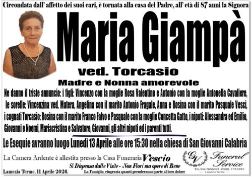 i cognati Torcasio: Rosina con il marito Franco Falvo e Pasquale con la moglie Concetta Gatto, i nipoti: Alessandra ed Emilio, Giovanni e Noemi, Mariacristina e Salvatore, Giovanni, gli altri nipoti ed i parenti tutti.