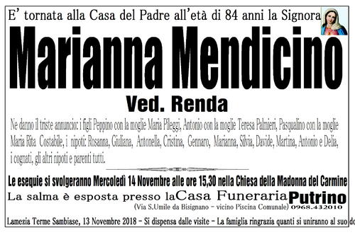 Le esequie si svolgeranno Mercoledì 14 Novembre alle ore 15,30 nella Chiesa della Madonna del Carmine