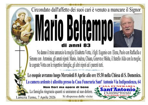 Ne danno il triste annuncio la moglie Elisabetta Votta, i figli: Eugenio con Elena, Paolo con Raffaella e Simone con Antonina, gli amati nipoti: Mario, Andrea, Chiara, Ginevra e Misha, il fratello Aldo con la moglie, le cognate Votta con le rispettive famiglie, gli altri nipoti ed i parenti tutti.