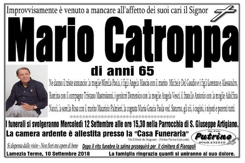 Lamezia Terme, 10 Settembre 2018 La famiglia ringrazia quanti si uniranno al suo dolore.
