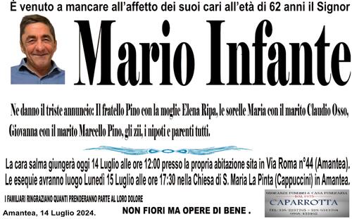 Le esequie avranno luogo Lunedì 15 Luglio alle ore 17:30 nella Chiesa di S. Maria La Pinta (Cappuccini) in Amantea.