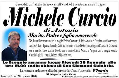 Le Esequie avranno luogo Giovedì 29 Gennaio alle ore 15.00 nella chiesa di San Giovanni Calabria.