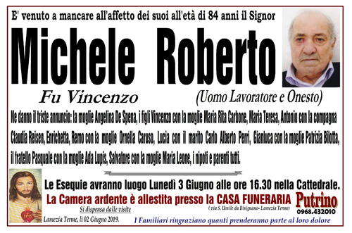 La Camera ardente è allestita presso la CASA FUNERARIA Putrino 0968.432010