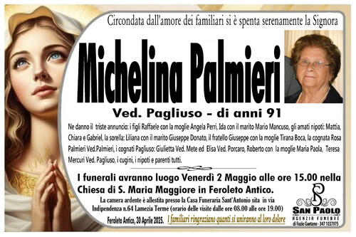 I funerali avranno luogo Venerdì 2 Maggio alle ore 15.00 nella