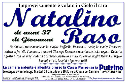 La camera ardente è allestita presso la Casa Funeraria Putrino