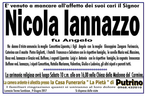 Buffone ved. Iannazzo, i nipoti Concettina, Natalia Marianna, Valentina, Giulia e Ludovica, gli altri nipoti e parenti tutti.