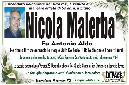 Le esequie avranno luogo Venerdì 28 Novembre alle ore 14:30 nella Chiesa di San Domenico in Lamezia Terme.