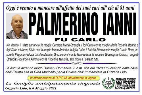 Ne danno il triste annuncio: la moglie Carmela Maria Strangis, i figli Carlo con la moglie Maria Rosaria Menniti e i