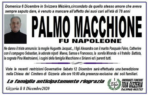 nella Chiesa del Cimitero di Gizzeria alle ore 10:00 alla presenza esclusiva dei soli familiari.