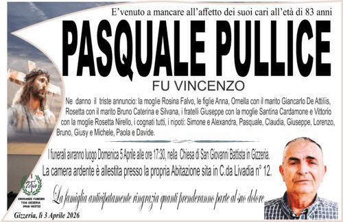 I funerali avranno luogo Domenica 5 Aprile alle ore 17:30, nella Chiesa di San Giovanni Battista in Gizzeria.