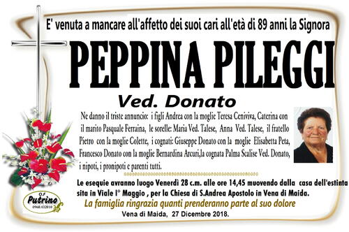 Le esequie avranno luogo Venerdì 28 c.m. alle ore 14,45 muovendo dalla casa dell'estinta