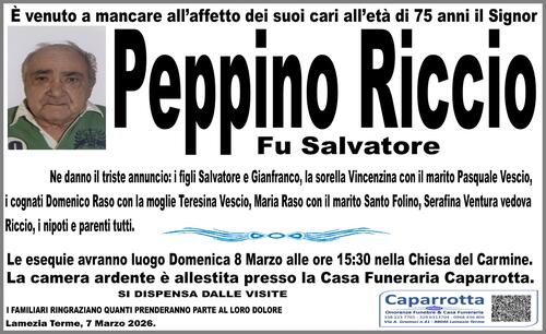Ne danno il triste annuncio: i figli Salvatore e Gianfranco, la sorelle Vincenzina con il marito Pasquale Vescio, i cognati Domenico Raso con la moglie Teresina Vescio, Maria Raso con il marito Santo Folino, Serafina Ventura vedova Riccio, i nipoti e parenti tutti.