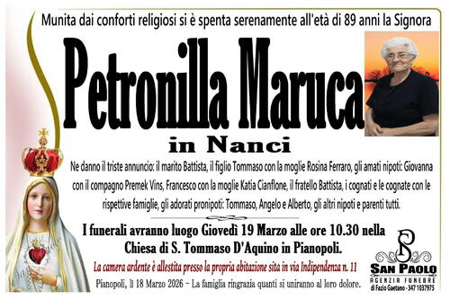 Pianopoli, lì 18 Marzo 2026 - La famiglia ringrazia quanti si uniranno al loro dolore.