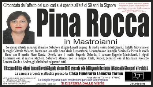 Ne danno il triste annuncio il marito Salvatore, il figlio Lowell Eugene , la madre Rosina Mastroianni, i fratelli: Giovanni con
