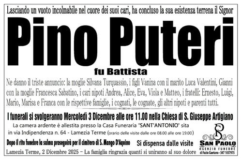 I funerali si svolgeranno Mercoledì 3 Dicembre alle ore 11.00 nella Chiesa di S. Giuseppe Artigiano