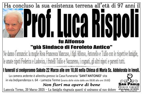 Lamezia Terme, 20 Marzo 2025 - La famiglia ringrazia quanti si uniranno al suo dolore