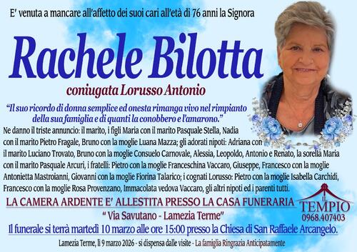 Lamezia Terme, lì 9 marzo 2026 - si dispensa dalle visite - La famiglia Ringrazia Anticipatamente