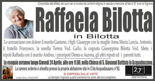 Lo annunciano con dolore il marito Gaetano, i figli: Giuseppe con la moglie Anna Maria Lancia, Antonio,