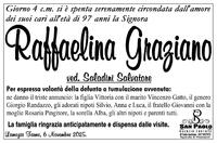 Giorno 4 c.m. si è spenta serenamente circondata dall'amore dei suoi cari all'età di 97 anni la Signora Raffaelina Graziano Vedova Saladini Salvatore Agenzia Funebre San Paolo info 347.1037975