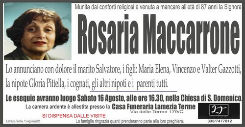 Lo annunciano con dolore il marito Salvatore, i figli: Maria Elena, Vincenzo e Valter Gazzotti,