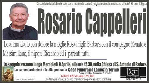 Lo annunciano con dolore la moglie Rosa i figli: Barbara con il compagno Renato e Massimiliano, il nipote Riccardo ed i parenti tutti.