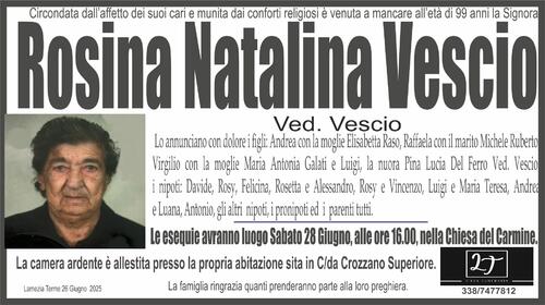 Lo annunciano con dolore i figli: Andrea con la moglie Elisabetta Raso, Raffaela con il marito Michele Ruberto,