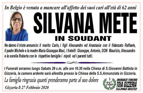In Belgio è venuta a mancare all'affetto dei suoi cari all'età di 62 anni