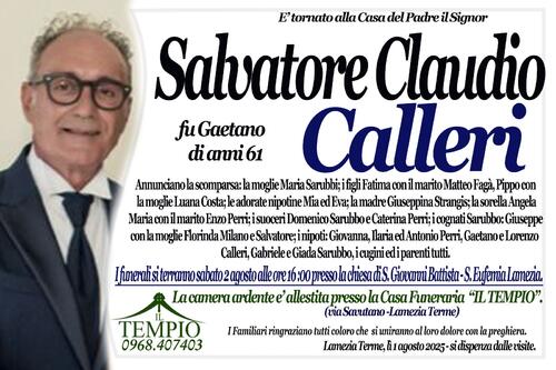 I funerali si terranno sabato 2 agosto alle ore 16 :00 presso la chiesa di S. Giovanni Battista - S. Eufemia Lamezia.