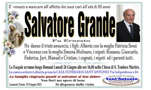Data di Nascita: 19/05/1938 Decesso: 24/06/2023 Città: LAMEZIA TERME Esequie: 25/06/2023 16:00