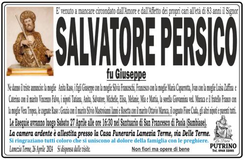 Ne danno il triste annuncio: la moglie Anita Raso, i figli Giuseppe con la moglie Silvia Franceschi, Francesco con la moglie Maria Caparrotta, Ivan con la moglie Luisa Zaffina e