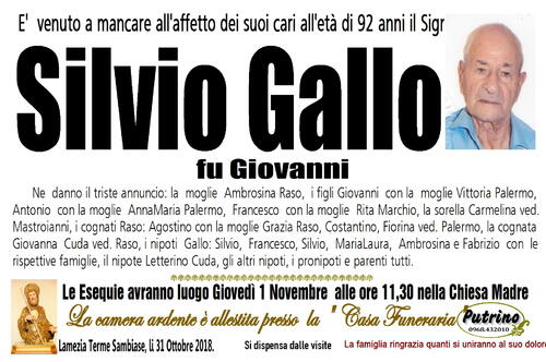 Lamezia Terme Sambiase, li 31 Ottobre 2018. O.f Putrino 0968-432010