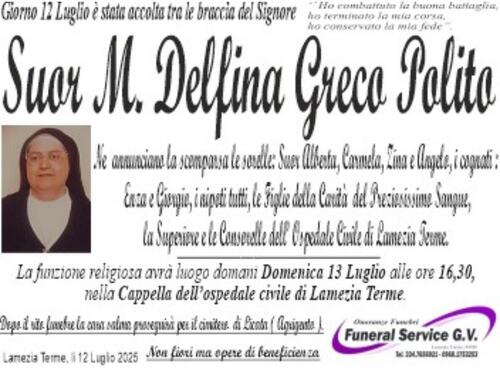 la Superiore e le Consorelle dell’ Ospedale Civile di Lamezia Terme.