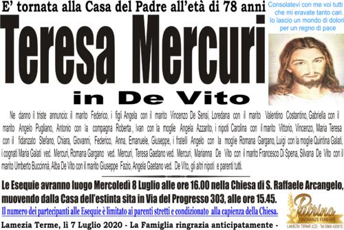 Le Esequie avranno luogo Mercoledì 8 Luglio alle ore 16.00 nella Chiesa di S. Raffaele Arcangelo,