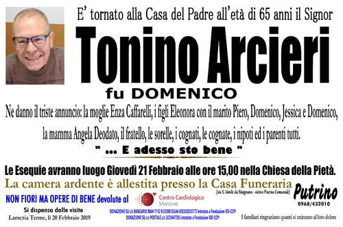 La camera ardente è allestita presso la Casa Funeraria PUTRINO