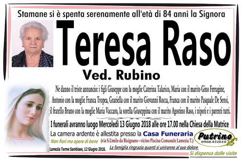 La camera ardente è allestita presso la Casa Funeraria di PUTRINO