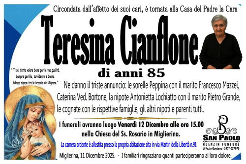 Miglierina, 11 Dicembre 2025. - I familiari ringraziano quanti parteciperanno al loro dolore.